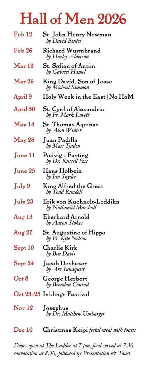On the second and fourth Thursdays of each month, men gather at The Ladder to engage in a vigorous, non-“lowest-common-denominator” type of ecumenism among the three Great Christian Traditions. We aren’t afraid to put on our theological boxing gloves to spar for a minute, and to take them off for a shared pint the next. If you haven’t seen a Catholic listen to the life story of John Wesley; if you haven’t watched a Protestant learn about Evagrius of Pontus; and if you haven’t seen Orthodox, Catholic, and Protestant men sit around a table together and talk theology until midnight (or later!) . . . then you need to come to the Hall of Men.